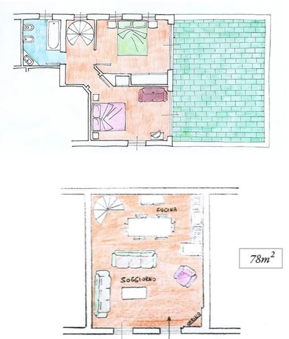 La Ginestra ligt op de begane grond en heeft een overdekt gemeubileerd terras. Het appartement is ingericht in blauwtinten met leuke trompe l'oeil details op de muren. De ouderslaapkamer met 2-persoonsbed en de studeerkamer met een 1-persoonsbed hebben een balkenplafond. Het appartement heeft een ba...