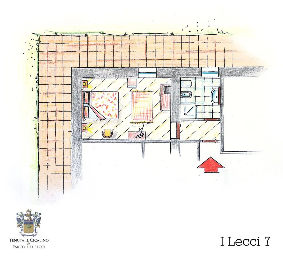 Het landgoed is groot waardoor de verschillende landhuizen die los van elkaar over het landgoed verspreid staan veel privacy hebben. Parco dei Lecci ligt het dichtst bij het hoofdgebouw. Het huis beschikt over drie appartementen en zeven kamers.